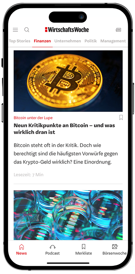 Unternehmen, Märkte, Geldanlage – mit der App der WirtschaftsWoche sind Sie mitten im Geschehen. Klar und kompakt liefern wir die wichtigsten News und deren Einordnung.